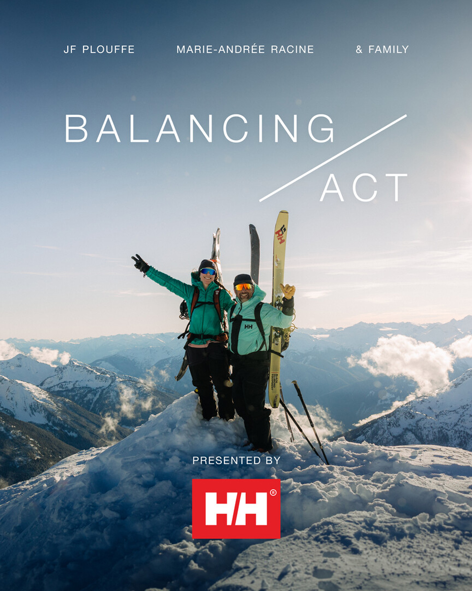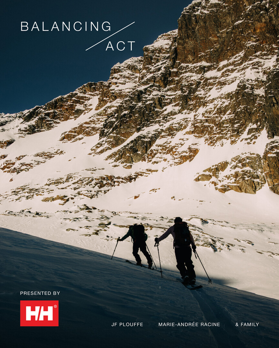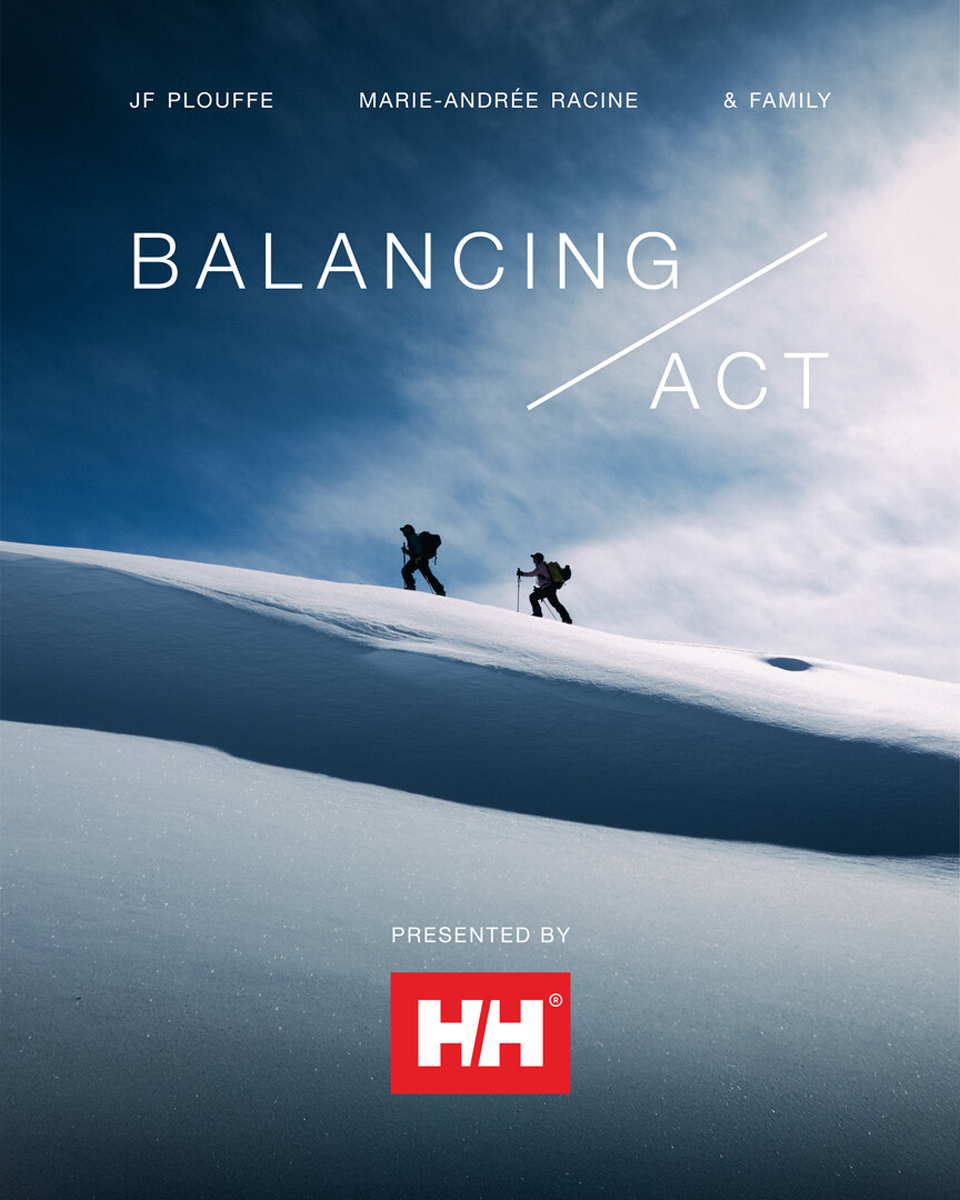 The Balancing Act is a 14-minute film featuring JF Plouffe and Marie-Andree Racine navigating what it means to be a blended family as they juggle parenting, work and their passion for mountain sports. The film documents JF and Marie on a multi-day mission in the mountains, while contrasting this with day-to-day family life, adventures with their kids and how they are able balance it all.